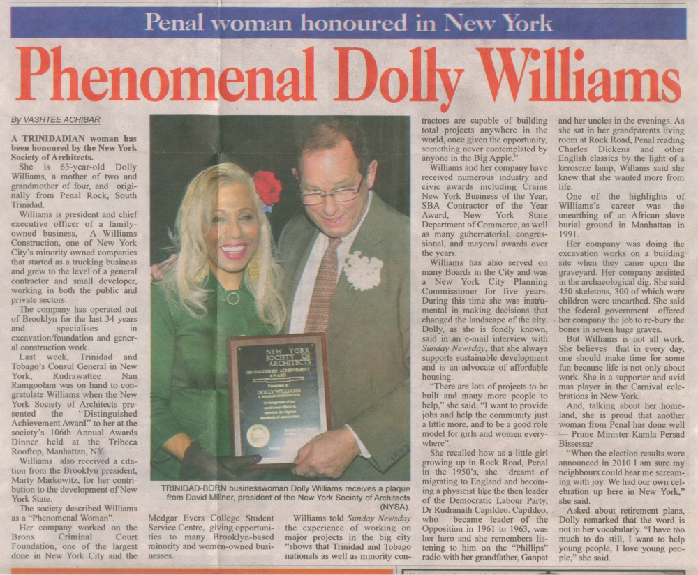DOLLY WILLIAMS: RECEIVING AWARD FROM THE NEW YORK SOCIETY OF ARCHITECTS, JANUARY 2013