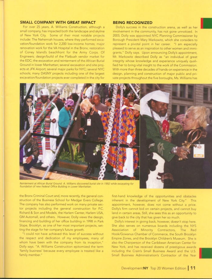 ARTICLE ABOUT DOLLY WILLIAMS: DEVELOPMENT NEW YORK MAGAZINE